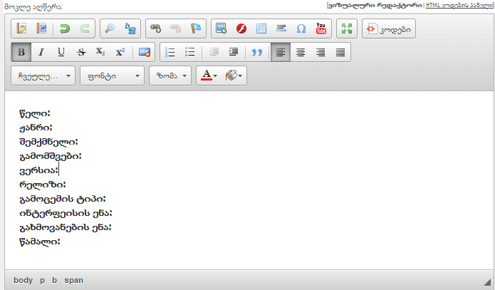 - მოკლე აღწერაში აუცილებლად უნდა იქნეს შევსებული ისე როგორც სურათზეა აი ტექსტიც