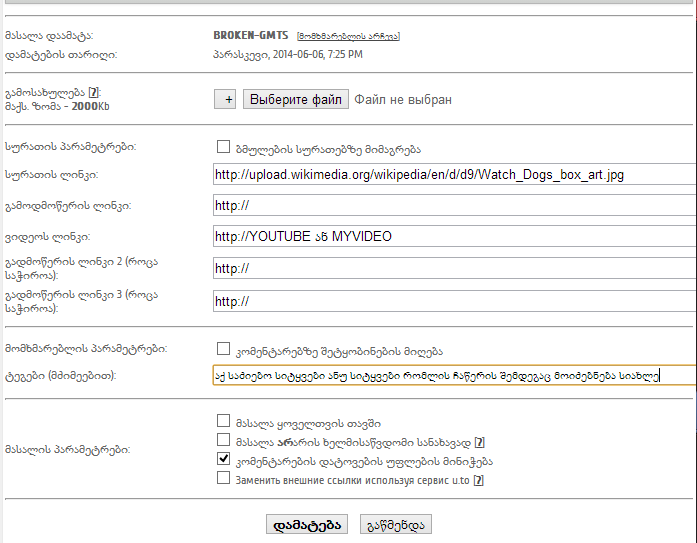 - ქურდობა – აკრძალულია სხვა საიტიდან სიახლის მოპარვა